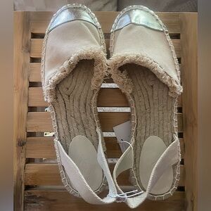 Step into style with these chic, boho style, rope espadrille sandals. Easy on, accented silver toe with fringe. Featuring a blend of silver and cream, these shoes offer both comfort and style. Perfect for casual summer outings or a day at the beach.