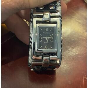 Women's Silver one 20mm Maurice's Watch, Plaid Fabric Band