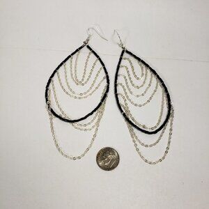 Add some edge to your style with these women's silver-tone dangling chain black beaded hoop fishhook drop earrings. The unique design features black beads on a silver-tone hoop with a dangling chain, perfect for adding movement and dimension to your look. The fishhook closure ensures a secure and comfortable fit, and the drop design is perfect for adding a touch of sophistication to any outfit NWOT