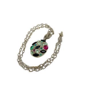 Womens Silver Multi-gem Pendant Necklace 22" Front T-Clasp 0836 Facet Fashion