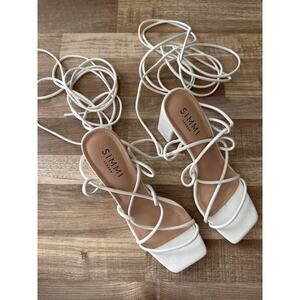 Women's Simmi London Tie Ankle Block Heeled Sandals in White size 8 Bridal