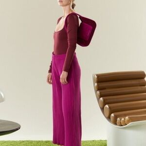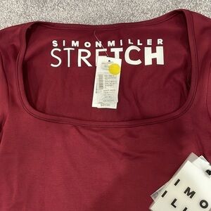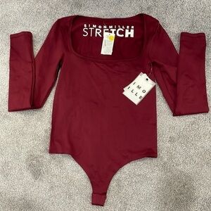 Simon Miller long sleeve bodysuit. Robe square neck in burgundy color. Thong back. No snaps on bottom. Size S.