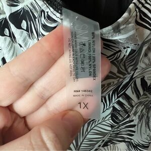 Women’s Simply Fit black and white banana leaf printed one piece swim suit 1X
