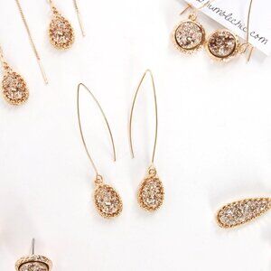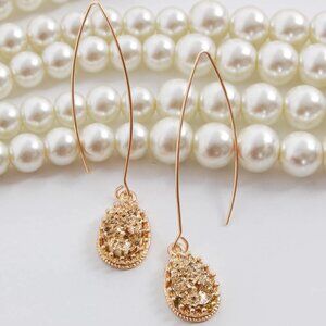 Women's Simulated Druzy Dangly Threader Earrings Gold Long Simple Boho Hoop