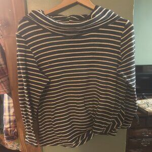 Cozy up in irresistible style with the Women's Size 0X Maurice's Cowl Neck Sweater in Blue and White Striped.