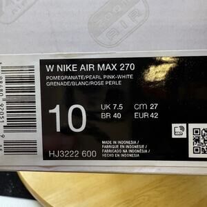Womens Size 10 Nike Air Max 270 Pink White Trainer Sneakers HJ3222 600
