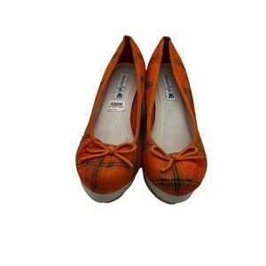 Womens Size 10 Wedge Slip On Fabric Orange Plaid NEW