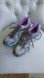 From my sister's closet. These are size 11 ASICS Gel Nimbus 14 running shoes in purple and gray with blue on the soles. Pre-owned and in good, clean condition. Smoke free home. All sales go toward my daughter's student loans. Thanks for looking.