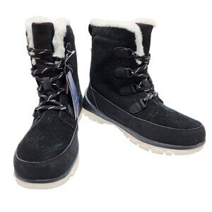 Womens Size 11 Black Winter Snow Boots With Faux Fur Lining Lace-Up Closure