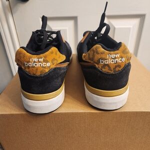 Women's Size 13(Men's Size 11) New Balance Black Suede & Tan Leopard Sneakers