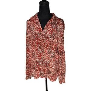 Women's Size 14 Jacqueline Ferrar 100% Silk Blouse Red Animal Print