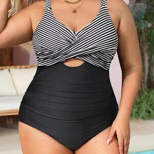 Womens Size 18W One Piece Tummy Control Bathing Suit Cutout