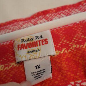 Women's Size 1X 3/4 Sleeve Top Cotton w. Stretch Yellow/Pink Machine Wash/Dry