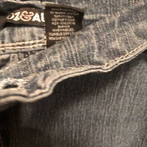 Jeans are in very good shape and the material is ramie. Cotton and polyester.
