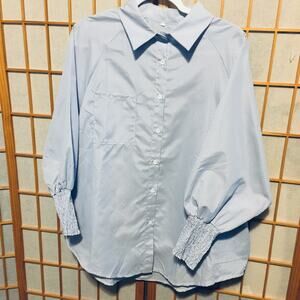 Women's Size 2XL Blue White pin striped Blouse Polyester unbranded