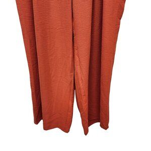 Womens Size 2XL Rust Wide-Leg Pants Crinkle Texture