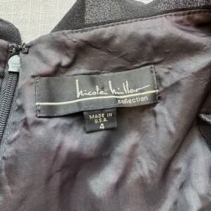 Women’s Size 4 Black Polyester Dress - Ruffled V-Neck, Slit & Sleeve, Back Zip