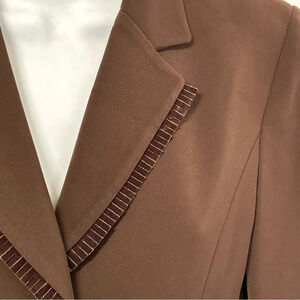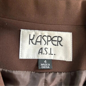 Kasper ASL Brown Blazer Women’s Size 4 3 Button Ruffle Pockets Lined Career