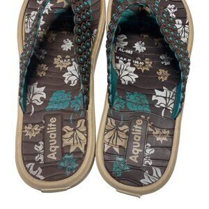 Womens Size 6 Flip Flops -Brown & Teal Aqualite Flip With Floral Print Embellish