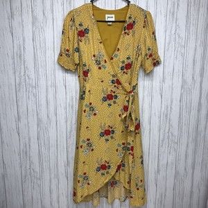 Womens Size 6 Joanie Savannah Floral Yellow Wrap Dress EUC. Chest 18 Waist 14 Length 41.5