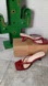 Womens Size 6 Kitten Heels Square Open Toe Slip on Heeled Sandals Burgundy