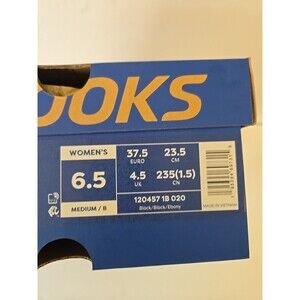 The product is a pair of women's Brooks Ghost Max 3 running shoes in size 6.5, featuring a sleek black color scheme with accents of black and ebony. These athletic sneakers by Brooks are designed for performance activities such as gym training, walking, cross-training, and running. With a comfortable B width and the Ghost Max 3 model, these shoes offer a stylish and functional option for active women looking for high-quality footwear.