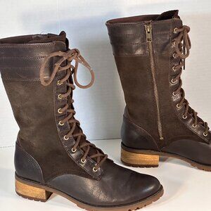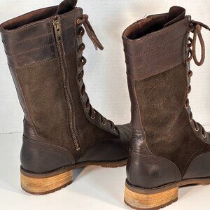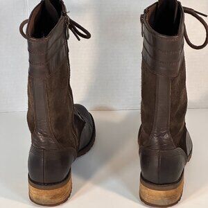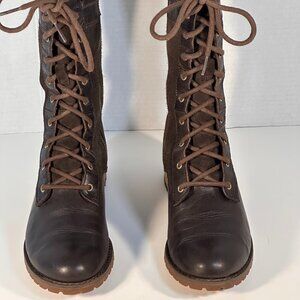 Brown on Brown Leather and suede leather boots, 10 eye lace-upwith comfortable rounded toe
