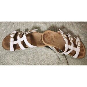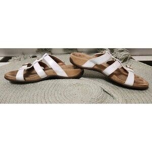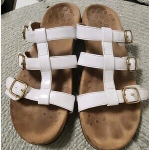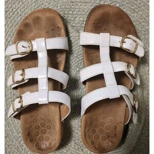 Women's Size 7 Vionic MISA Slide Sandal White Patent Leather Shoes wVelc Comfort
