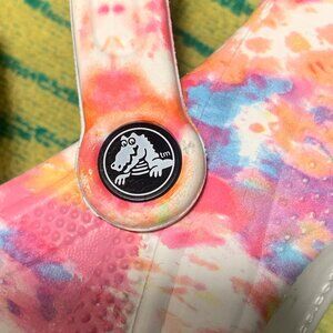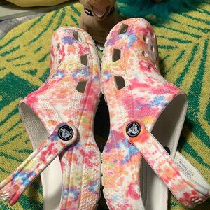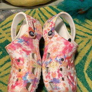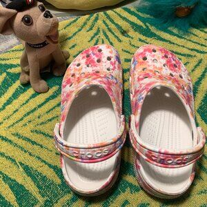 Women's Size 7.0 CROCS Slip On Shoes Color Burst Design Excellent Condition