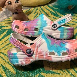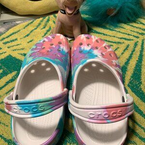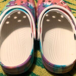 Women's Size 7.0 CROCS Slip-On Clog Style Shoes Tie-Dye Design Great Condition.