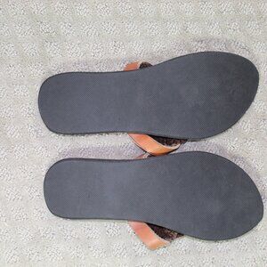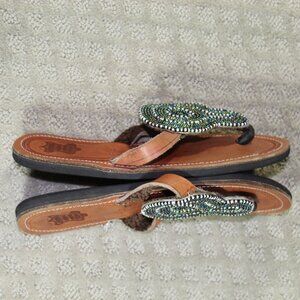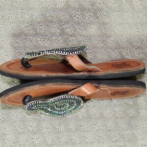 Women's Size 7.5 / 38 Handmade Beaded Leather Upper Rubber Soled Flip Flops