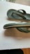 Bottom tread still quite good. Very clean. Flexible yet supportive sole. Very comfy between toes and good for wide feet. Straps fully in tact and bonded to sole near ankle. Beige trim around edge, not white.