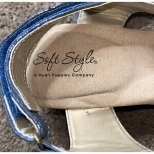 Women’s Size 9 Soft Style Blue Metallic Open Toe Sandal Wedges Hush Puppies