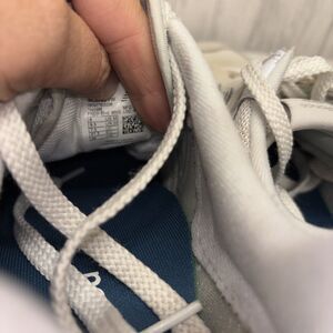The product is a pair of women's size 9.5 New Balance 574 sneakers in light gray. This athletic shoe is designed specifically for women and features a sleek sneaker style. The gray color adds a versatile touch to the outfit, while the New Balance brand ensures quality and comfort. Perfect for casual wear or athletic activities, these shoes are a stylish and practical choice for any woman's wardrobe.