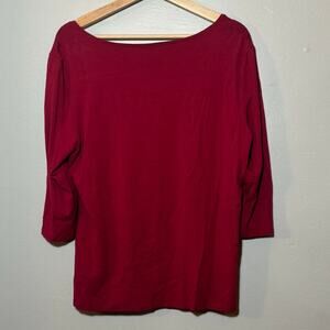 Women's Size L Eileen Fisher Red 3/4 Length Sleeve Scoop Neck Rayon Lyrca