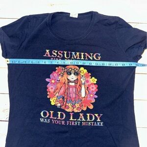 Women’s Size L Graphic Tee Short Sleeve Navy Grandma Summer Lightweight Quirky