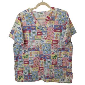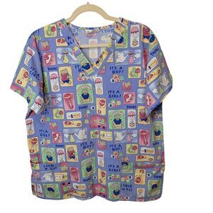 Womens Size L Short Sleeve Scrub Tops Nursery Baby Child Various Brands Lot Of 4