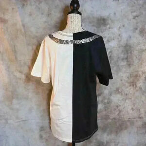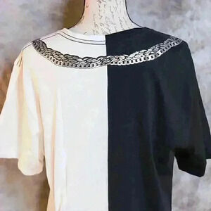 Women's Size L True Religion World Tour black/white split design t-shirt