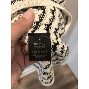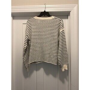 This Women's Size Large Black White Pullover Sweater is a minimalist and cozy addition to any wardrobe. Made from a comfortable cotton blend with a knit fabric type, this relaxed fit sweater features a crew neck and long sleeves, perfect for a casual occasion. The black and white striped pattern adds a stylish touch, while the multicolor design offers a colorful twist. With a brand like Wishlist, this sweater is a versatile choice for the winter and fall seasons.