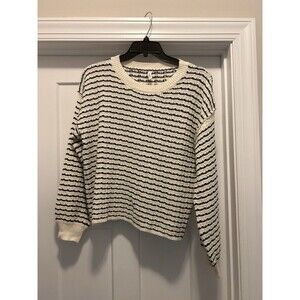 Women’s Size Large Black White Pullover Sweater Slouchy Midriff Boxy Minimalist