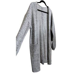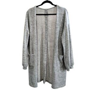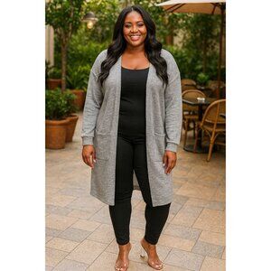 Womens Size Large Cardigan Grey Longline Button-Back Pockets Casual Plus