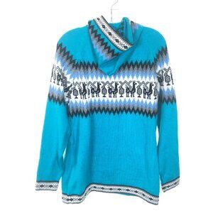 Womens Size Large Inti Alpaca Electric Blue Wool Knit Hooded Full Zip Jacket