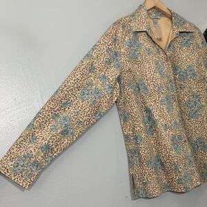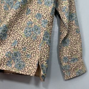 Womens Size Large Leopard Floral Faux Suede Button Up Shirt Safari Old Money