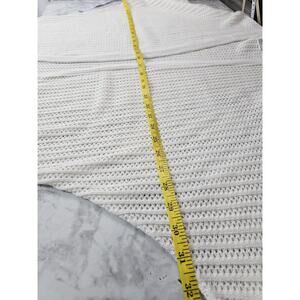 A women's size L cardigan in white, featuring an open-knit style with 3/4 Dolman sleeves. Made in the USA of lightweight acrylic material, this sweater is suitable for travel, casual outings, and business settings. The brand is Isela, and it has a regular fit, making it ideal for various occasions, as a teacher, preppy style. Perfect for all seasons - winter, summer, fall, and spring.