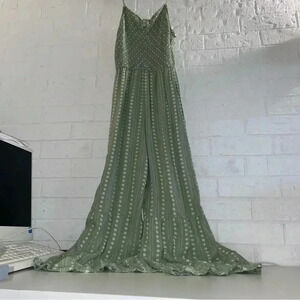 Women’s Large Romper - Green - Tiny stain on one pant leg in back- pictured. HAS POCKETS!