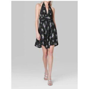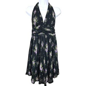 Womens Size M Black Floral Halter Neck Mini Dress Open Back Lined Sexy Party
