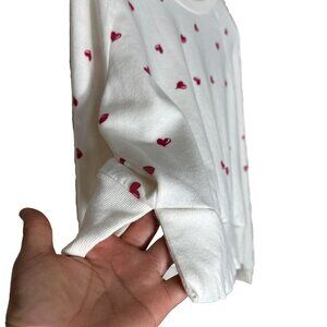Women’s Size M Crop Sweater Heart Print Ivory Pink Trending Casual Sweater’s