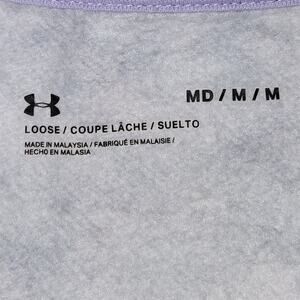 This stylish Under Armour sweatshirt is a must-have for your wardrobe! This crewneck pullover is perfect for adding a pop of color and comfort to any outfit. The tie-dye design features a beautiful blend of purple, white, lavender, and blue in an abstract pattern, making it both aesthetic and trendy. It is a size M, also seen as MD or medium. This long sleeve sweatshirt is perfect for athletic activities or casual athleisure wear. Its oversized and relaxed fit ensures you stay cozy, comfy, and comfortable all day long, making it ideal for loungewear or streetwear. Embrace Y2K, grunge, and indie styles with this soft and versatile piece of sportswear.