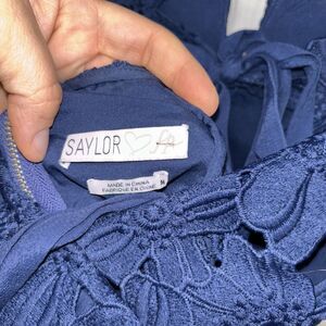 Elevate your wardrobe with this stunning navy Saylor X FP Dahlia dress, perfect for any occasion. This dress features a flattering mini cut, short dress length, and a beautiful blue color. The size is M and fits regular size types for women. It is made of high-quality materials and has been well-maintained.