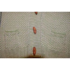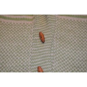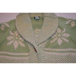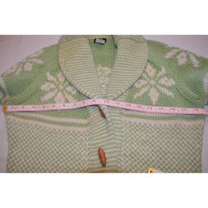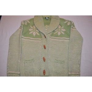 Women's Size Medium 100% Wool Handknit Cardigan Toggle Fair Isle Green Shawl